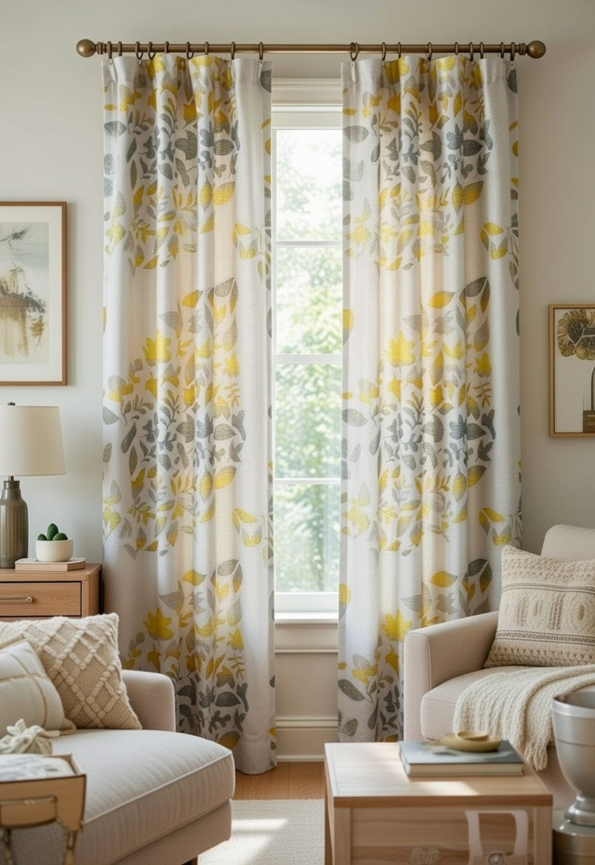 Perde caravell deco 1.45m me lule bezhe kafe.