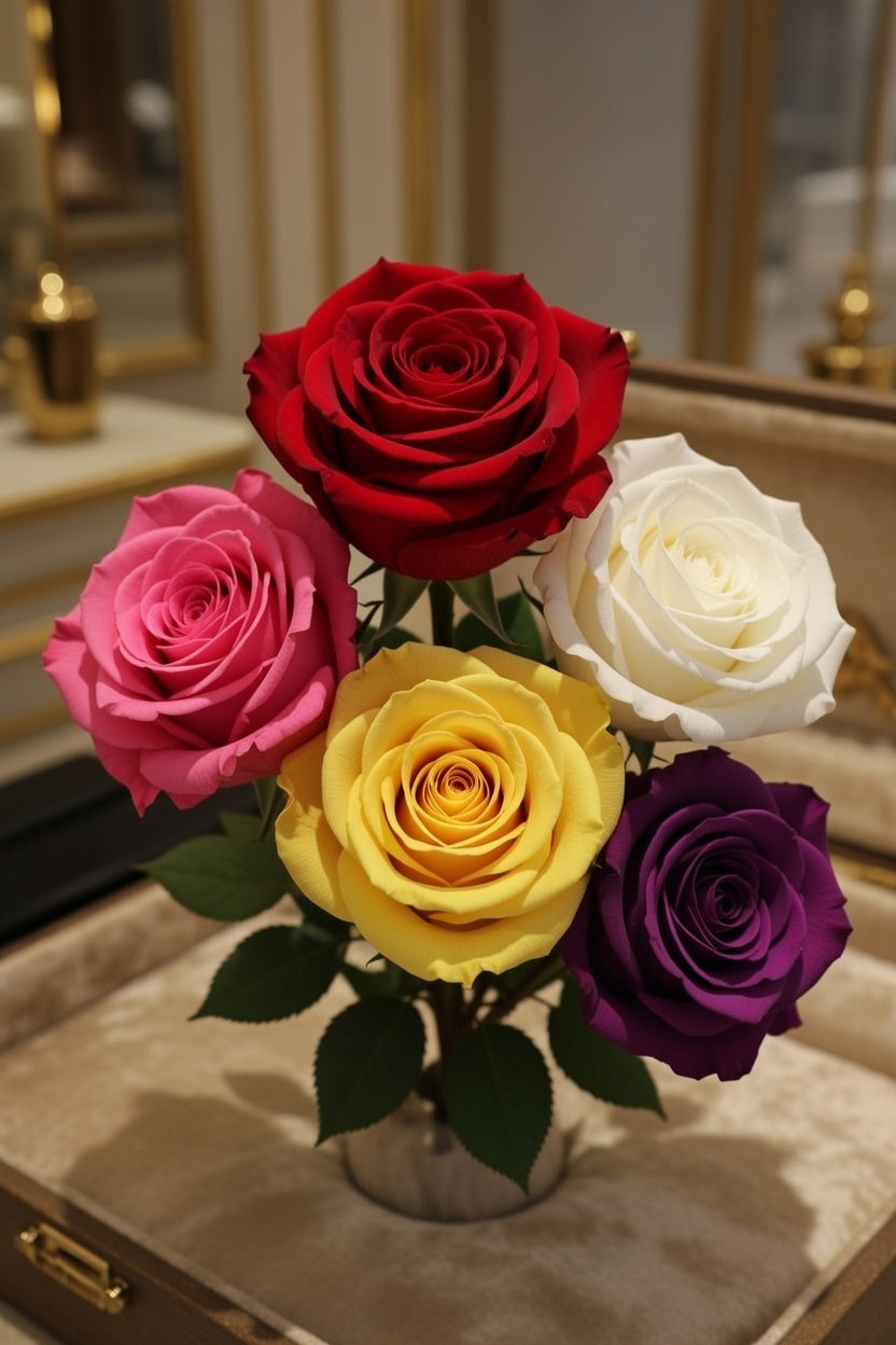 A decorative rose flower designed to enhance spaces with color and charm. Perfect for home decor lovers, event planners, and thoughtful gift-givers seeking a low-maintenance bloom in varied hues.