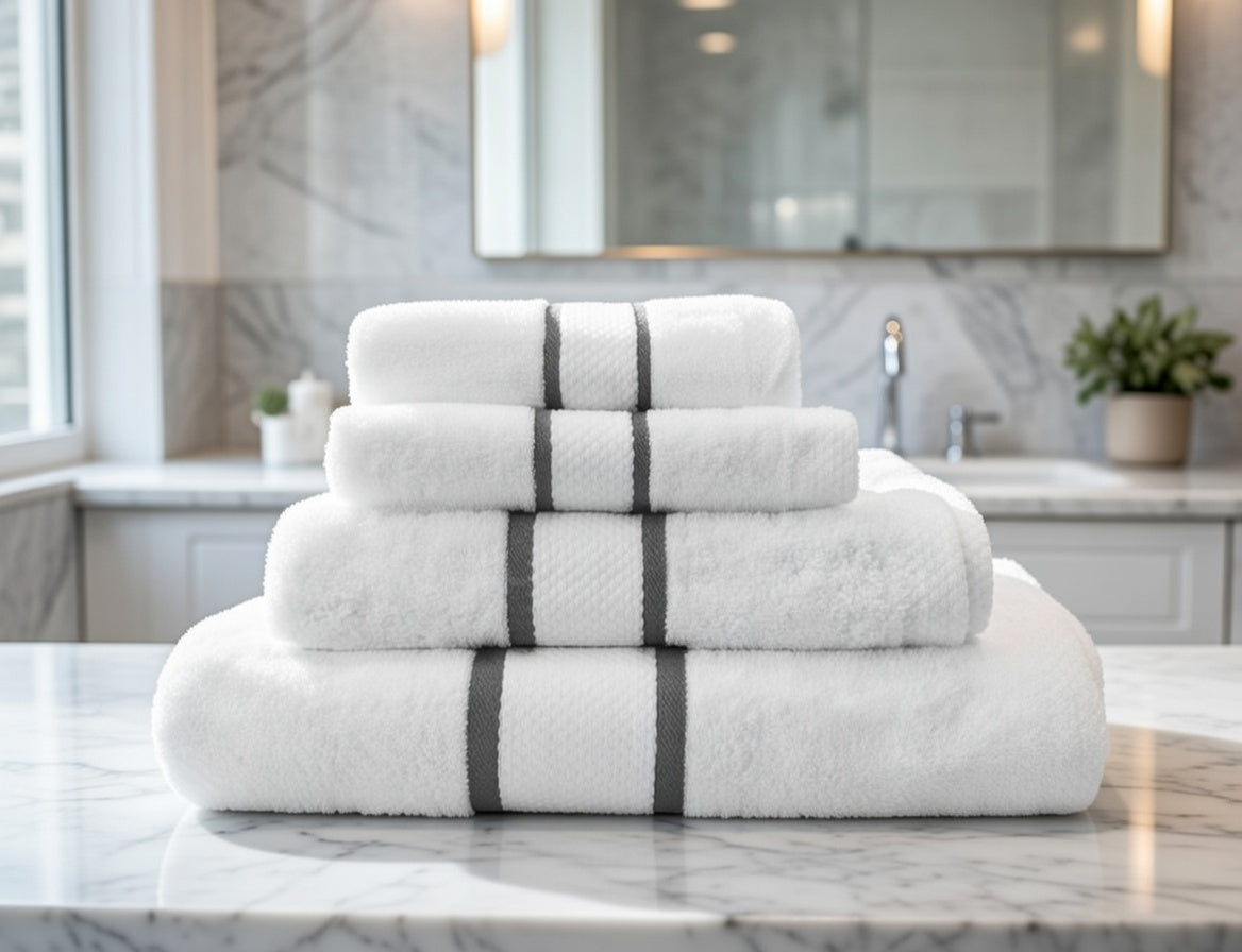 Peshqir i bardhe me vije gri, 100% pambuk, 500GSM